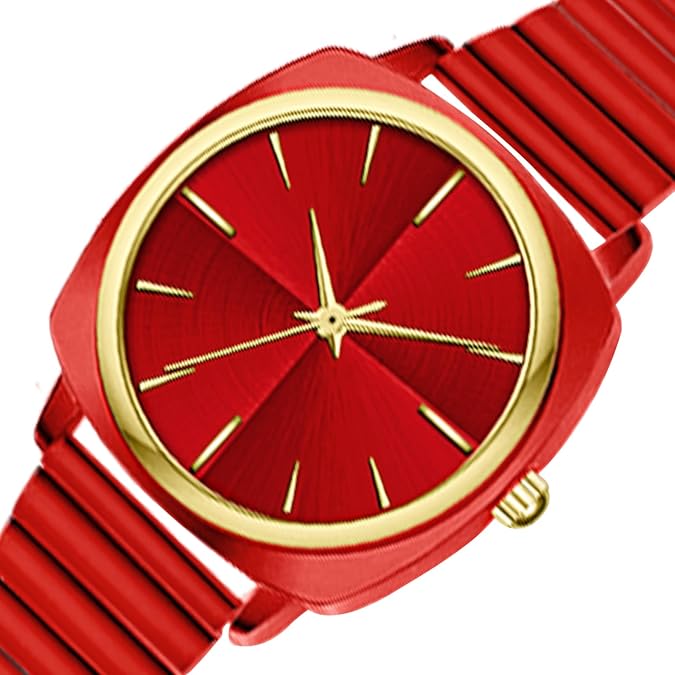 This women's watch with a red alloy strap features a striking red gold design. Its square case, rich red dial, and gold accents exude luxury. Perfect for parties, weddings, or simply adding a touch of polish to your everyday look, the red alloy strap is scratch-resistant and durable. It complements formal or bold casual wear.